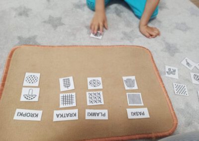- usprawniania precyzyjnych ruchów dłoni i palców poprzez dostarczanie wrażeń dotykowych pomagających w poznawaniu i rozróżnianiu kształtów, struktur, materiałów (stereognozja, propriocepcja, eksterocepcja),